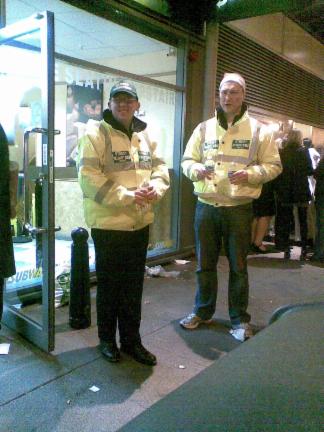 STREET MINISTERS - Seen here outside the Xscape building - working as volunteers with the MK Council's - Community Safety Team (now renamed Safer MK) seen here simply helping by handing out bottles of water to clubbers, just prior to Christmas - back in Dec 2008 and also again at Easter 2009.